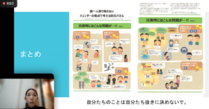 まとめとして、「災害時であっても人権は失われてはならない。どのような状況でも人権が脅かされることがあってはならない」「平時にできていないことは災害時でもできない」などのコメントが先生からありました。