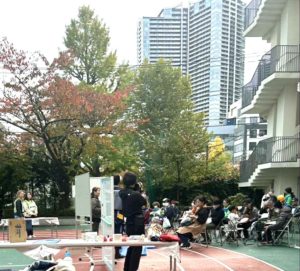晴海西小・中学校では親子連れが多い地域特性を先読みし、紙芝居や着ぐるみを活用した講話を行い、多くの住民が楽しみながら学べる訓練となりました。