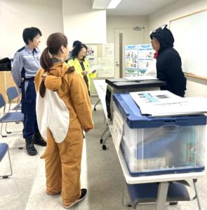 月島第二小学校では当日の導線が想定と異なりましたが、保健所職員の判断によりレイアウトを即時変更し、参加者がスムーズに訓練を体験できる環境が整えられました。