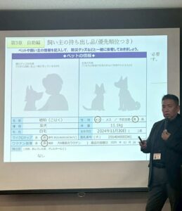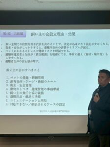 「ペット同行避難の制度的背景」から「現場で起きている課題」「行政・地域・専門職の連携のあり方」まで、より実践的かつ戦略的な内容を中心にお話ししました。